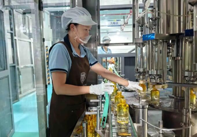 走进波波匠酿酒有限公司的包装车间,流水线高速运转,工人们正熟练地对100毫升装小瓶酒进行贴标、装箱,一派忙碌景象。“我们100毫升这种小瓶酒生产要比500毫升的快,瓶子小巧,灌装就相对较快,操作起来也顺手,这次订单是267件,我们这条生产线一个小时左右就能完成。”贵州省仁怀市波波匠酿酒有限公司包装车间主任田应杰说。